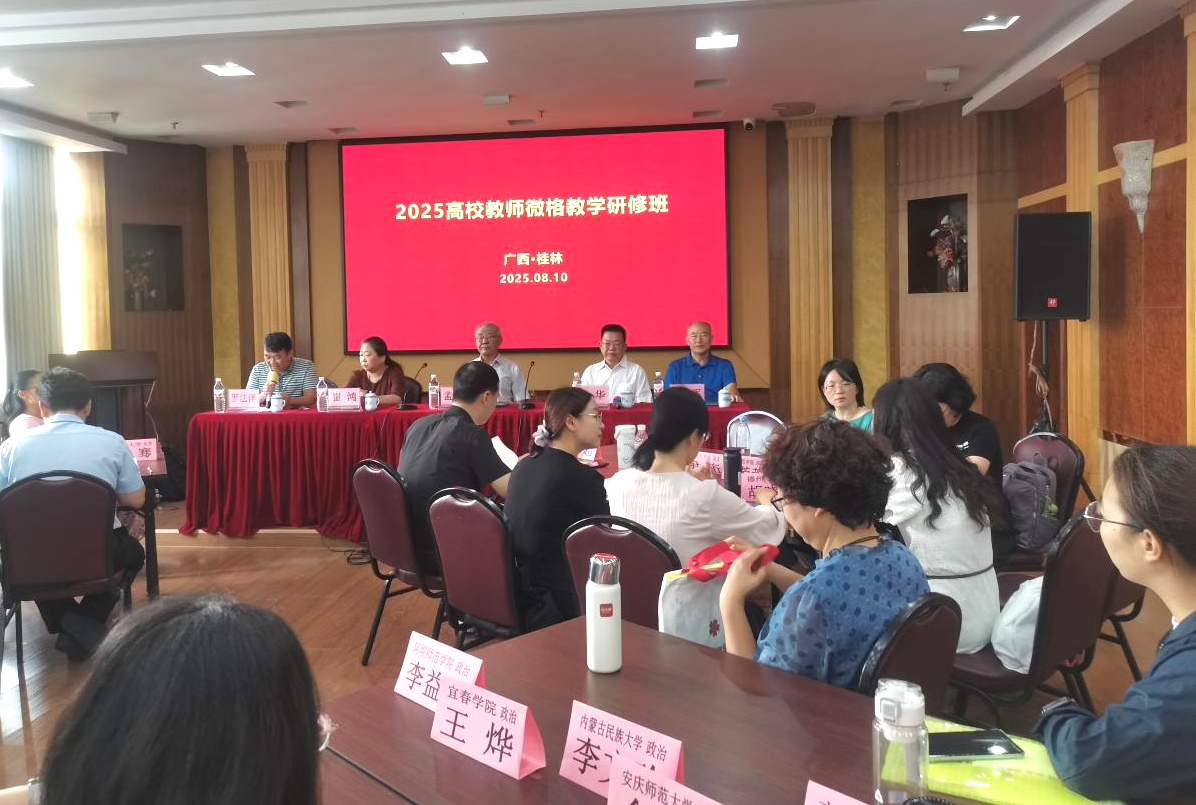 (本站讯 王烨报道)2025年8月9-15日,我院教师王烨博士受邀参加在广西桂林举办的高校教师微格教学研修班。研修班由中国教育技术协会微格教学专业委员会组织举办,基于历年“华文杯”比赛教学设计片段和教学技能测试的典型案例,侧重研究微格教学技术设计和教学技能的相关理论、技术实践和评价。本次研学的主题包括微格教学相关理论、基于片段的教学设计、微格教学技能训练以及相关微格教学技能现场案例剖析。