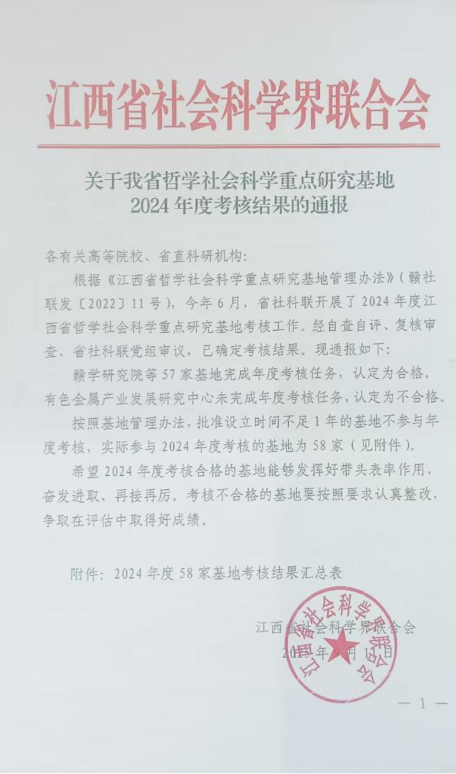 (本站讯 袁佳玉报道)近日,江西省哲学社会科学重点研究基地2024年度考核结果公布,宜春学院湘鄂赣苏区发展研究中心顺利通过考核。这一结果是对中心立足革命历史研究、服务社科发展工作成绩的充分肯定。