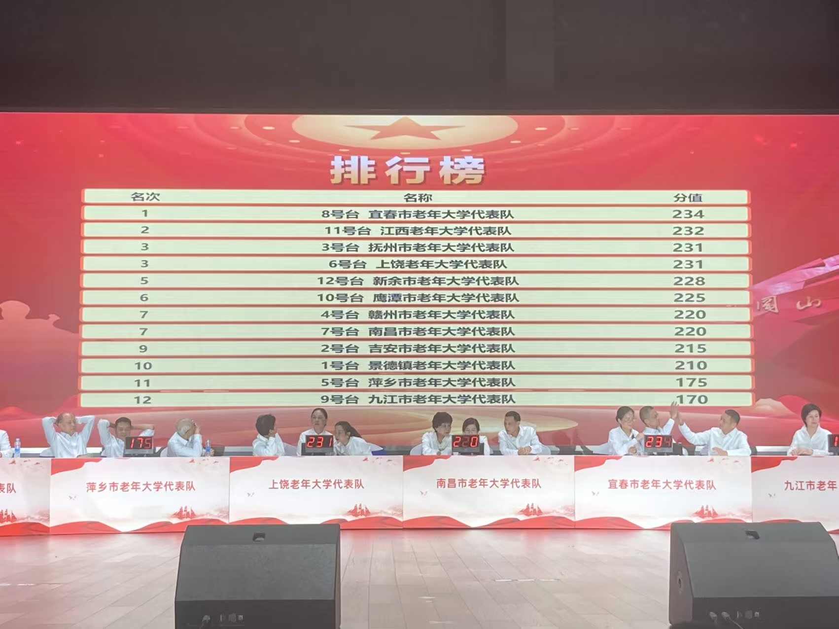 (本站讯 24级思政2班舒敏贤报道)为纪念中国人民抗日战争暨世界反法西斯战争胜利80周年,10月28日,江西省老年大学党史知识竞赛(抗战篇)在南昌举行。由我院胡喜如博士担任指导老师的宜春市老年大学代表队经过长达2个月的艰苦备战,在比赛中发挥出色,力克群雄,一路过关斩将,经过预赛、决赛、附加赛3个环节,最终从全省12支代表队中脱颖而出,获得总分第一名,并荣获唯一一等奖。