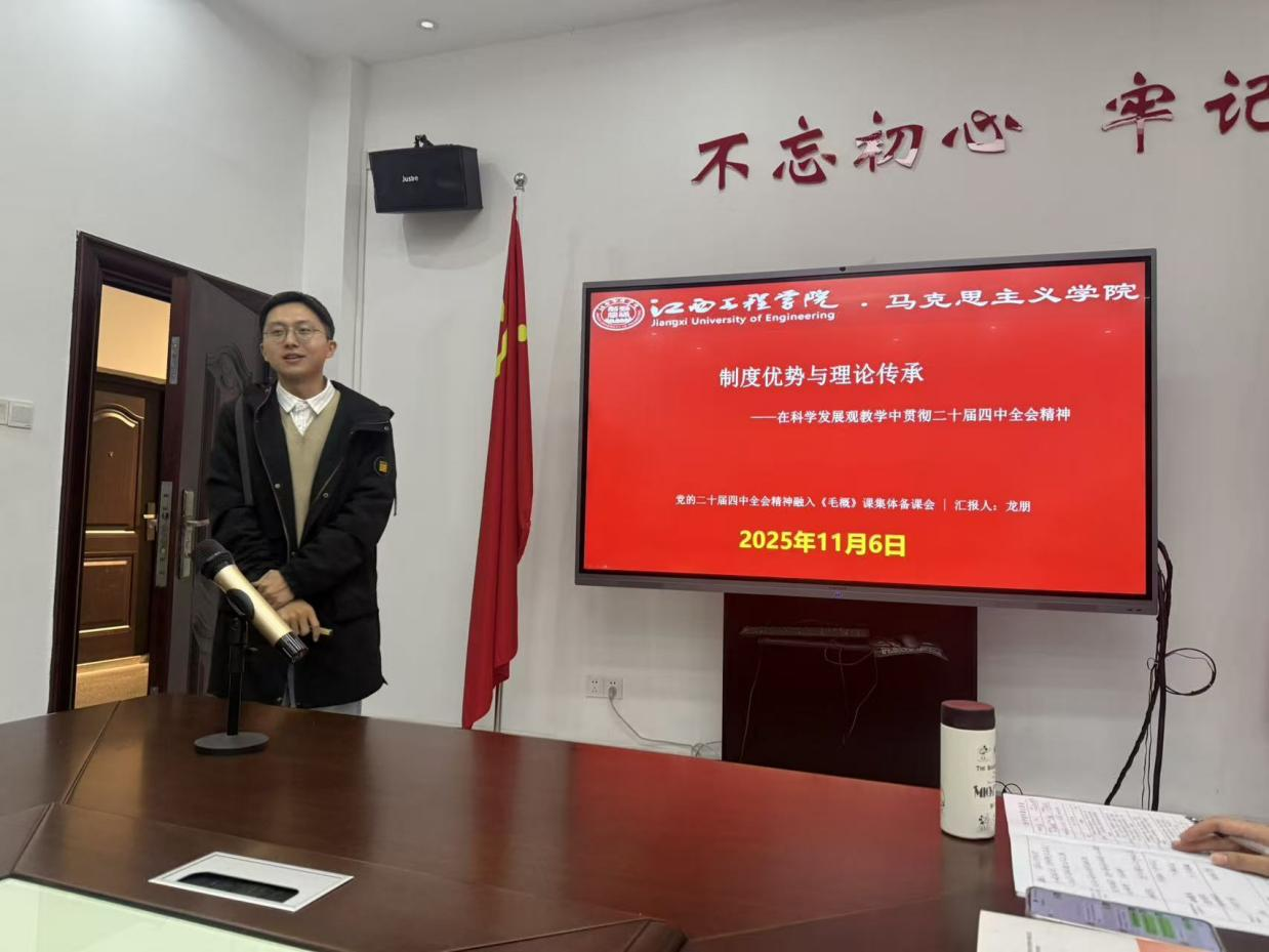江西工程学院马克思主义学院龙朋老师以“制度优势与理论传承——在科学发展观教学中贯彻党的二十届四中全会精神”为题,注重理论衔接与时代赋能,立足科学发展观的理论传承,结合党的二十届四中全会精神阐释制度优势的实践价值,实现经典理论与时代要求的有机融合。