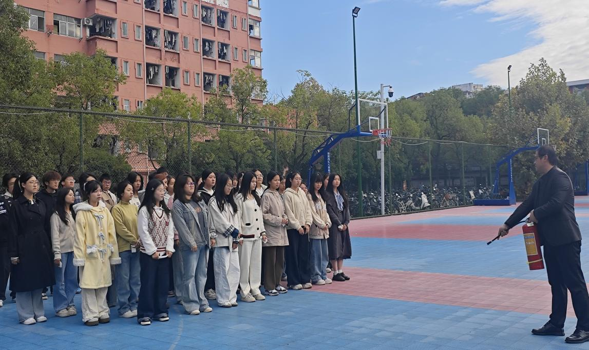学生们在篮球场集合有序列队后,认真聆听保卫处彭炜老师关于粉尘灭火器使用方法的讲解。彭老师介绍,学校每栋宿舍一楼配电房均配备有干粉灭火器,适用于大功率电器火灾;操作时需佩戴手套以防冻伤,如遇电器起火,应先关闭总闸而非拔插头,并立即上报宿管员和老师,必要时拨打119或110。通过此次讲解,同学们进一步掌握了灭火器正确使用方法,提升了火灾防范与应急处置能力。