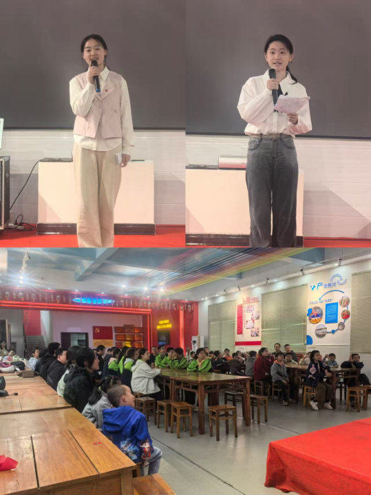上午,团员们抵达上高县洋林村——这个聚居着七种少数民族归国华侨的特色村落,开启了红色文化探寻之旅。活动伊始,两位青年团员崔娜娜和袁紫萱分别带来《红色名村为什么这样红》和《中国共产党人的家风》两场思政微课,向现场大中小学学生传递爱国情怀与责任担当,传承红色基因、赓续红色血脉。