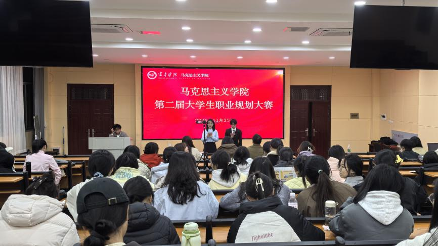 (本站讯 24级思政2班郑雅馨报道)11月25日晚,马克思主义学院第二届大学生职业规划大赛在人文大205教室顺利举办。本次比赛由我院思政专业负责人王烨、李婷以及学生工作办公室主任黄家驹担任评委,我院24级全体同学到场观摩。