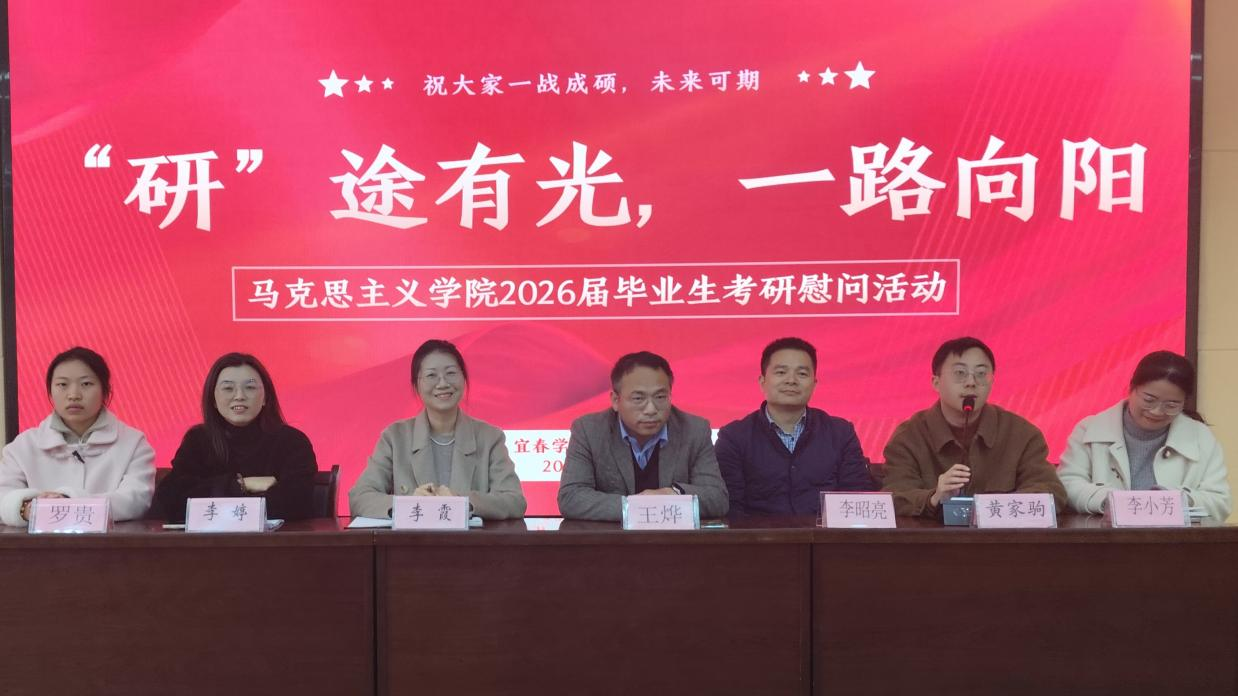 (本站讯 24级思政1班杨潞涵报道)12月3日下午,我院2026届毕业生考研慰问活动在人文大205开展。院党委书记兼院长李霞、思政专业负责人王烨和李婷、院党委委员李昭亮博士、学工办主任黄家驹、22级班主任李小芳和罗贵出席活动,22级全体考研学生参会,会议由黄家驹主持。