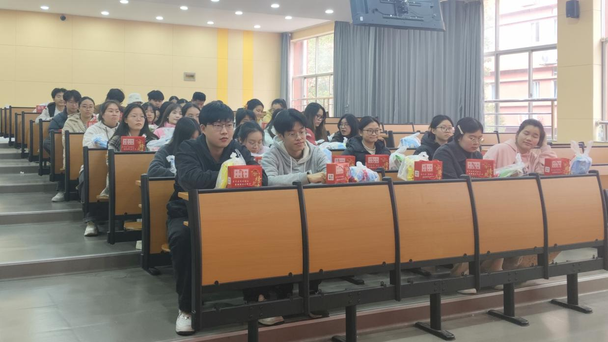 活动现场暖意融融,学院精心准备了包含签字笔、涂卡器等考场实用文具及寄语卡片在内的考研慰问礼包,以贴心物资为备考续航,让学子们在寒冬中感受到学院的关怀与牵挂。