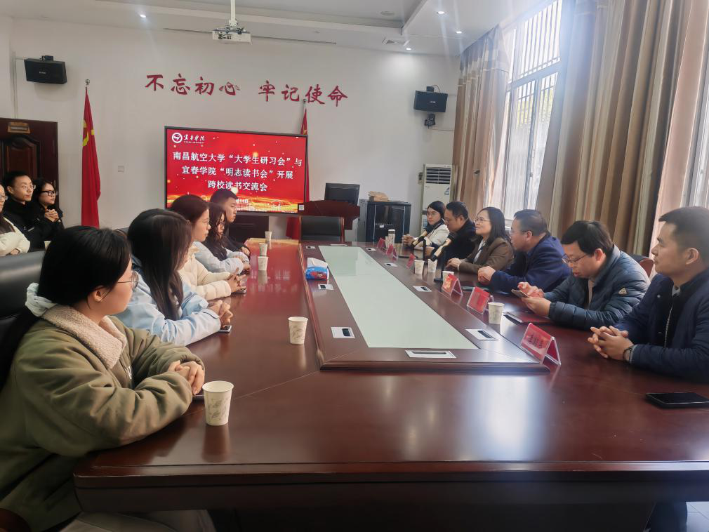 (本站讯 23级思政1班黄思婷报道)2026年1月14日下午,宜春学院马克思主义学院与南昌航空大学马克思主义学院联合开展跨校读书交流会。南航马院副院长常青及教师代表韩柱、时贤,我院教师代表王烨、李昭亮、罗俊芳,以及两校学生代表共同参与此次活动。