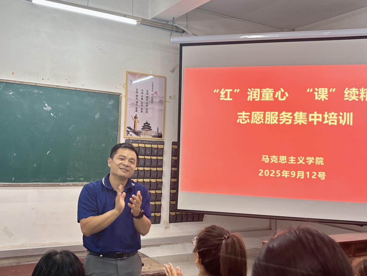 (本站讯 24思政1班崔娜娜报道)2025年9月12日晚,在人文大204教室,马克思主义学院“红村故事进校园”志愿服务集中培训会如火如荼地开展着。在本次活动中,李婷、李昭亮、伍小红、何娇等指导老师到场悉心指导。教师们围绕16个“红色名村”宣讲组和10门“红色文化”课程组的教学内容,进行了系统梳理、深度打磨与精准提炼;同学们也在反复试讲与研讨中,积累了面向宜春市各小学课堂的宝贵授课经验,为即将开展的“红村故事进校园”志愿服务活动奠定了坚实基础。