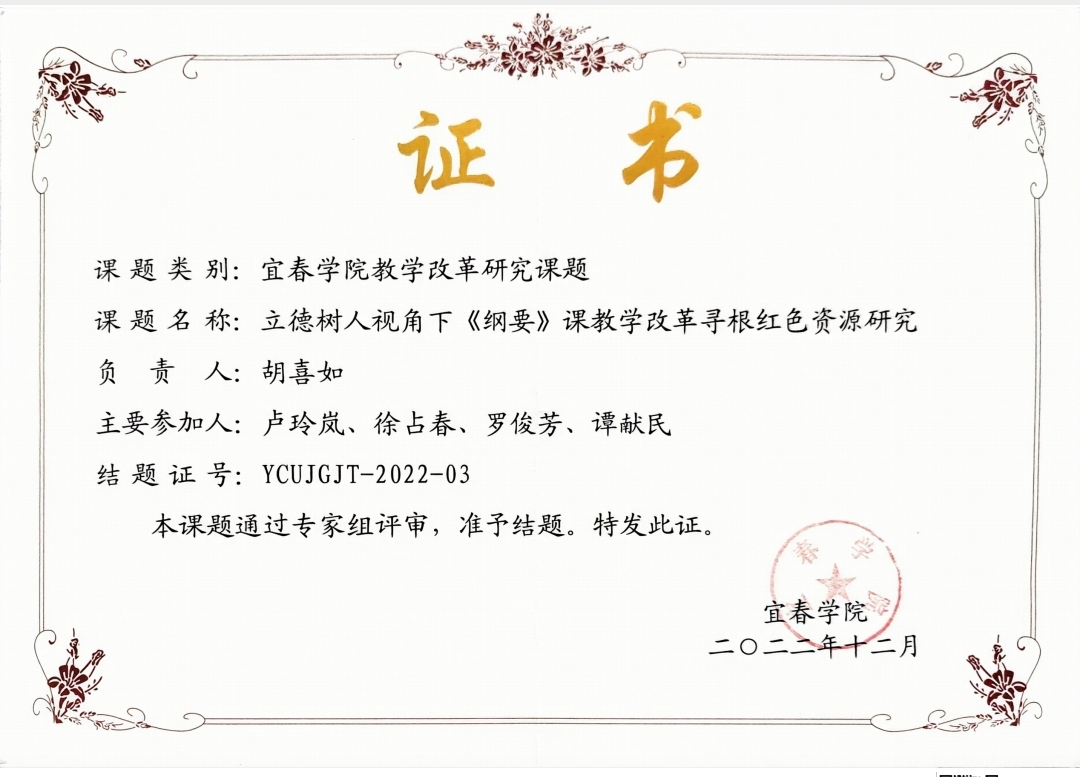 思政课不仅在三尺讲台,更在广袤红土。2024年,胡喜如受聘为宜春市新四军及红色文化研究会特约研究员,进一步深化对地方红色文化的系统研究。在此前2022年7月受聘为宜春市“习近平谈治国理政(第四卷)”宣讲团宣讲员、宜春市好人宣讲团宣讲员的基础上,他持续深入城乡基层,开展理论宣讲数十场,将党的创新理论送入社区、乡村、校园。作为宜丰县熊雄研究会副会长,他不仅系统整理研究革命先烈熊雄的事迹资料,更带领学生实地走访赣鄱红色旧址,让思政教育从课堂走向田野,从书本走进人心。一次次宣讲、一场场寻访,展现了他扎根红土、传承基因的执着与深情。