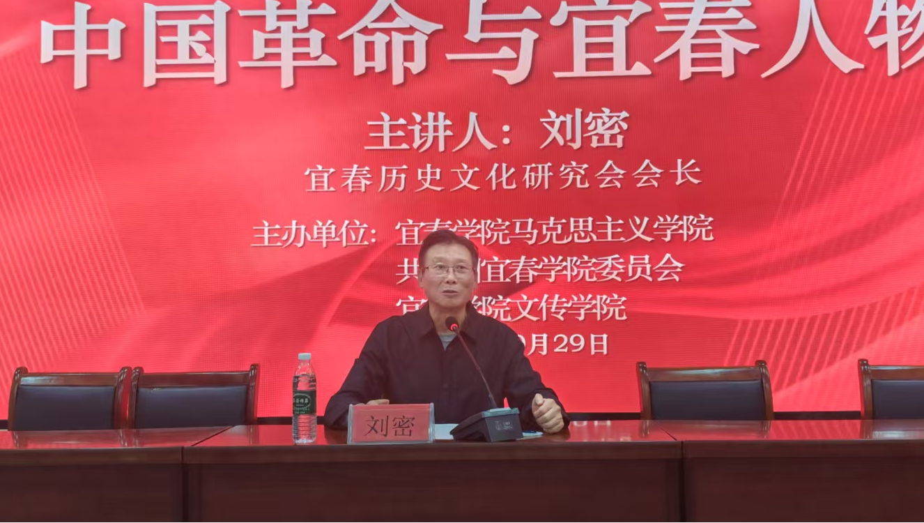 刘密会长围绕“中国革命与宜春人物”这一主题,结合宜春本土人物实例,生动讲述了读书人与洋面孔、种地人与读书人的关系,并以此为基础进一步延伸阐述中国革命精神的传承与意义。他指出,中国革命是知识群体与农民群体的结合,在近代中国面临列强入侵的生死存亡之际,以先进知识分子组成的知识群体发挥了革命先锋的作用,用文学唤醒农民群体,发动农民建立党组织,为中华民族的救亡图存做出了重要贡献。