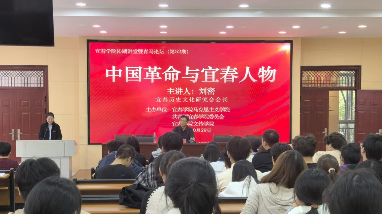 (本站讯 25级思政班刘雨欣报道)10月29日下午,宜春学院“沁湖讲堂”暨青马论坛(第52期)在人文大205教室举行,宜春历史文化研究会会长刘密担任主讲嘉宾,凤凰街道部分领导干部、我院部分专兼职教师代表和24、25级全体同学及文传学院部分同学参加,讲座由院党委书记兼院长李霞主持。
