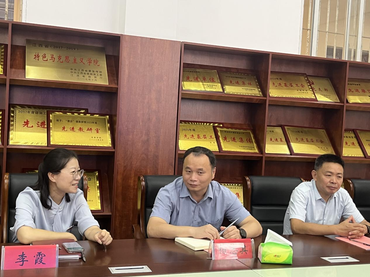 随后,杨书记与参会人员进行了面对面交流座谈,认真倾听大家在思政课教学、学院管理等方面遇到的问题和困难,并给予了针对性的建议和指导。校纪委副书记涂以辉也就马院师德师风建设和加强教师管理等方面提出了具体意见,强调要强化教师的职业道德教育,规范教师行为,营造良好的教育教学环境。