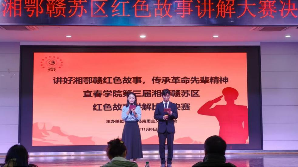 (本站讯 25级思政班罗果报道)11月6日晚,宜春学院马克思主义学院第三届湘鄂赣苏区红色故事讲解比赛在大学生青年发展中心顺利举办。本次比赛由我院思政专业负责人李婷、学生工作办公室主任黄家驹以及青年马克思主义知行协会指导老师王丽君担任评委,我院23、24和25级全体同学到场观摩。
