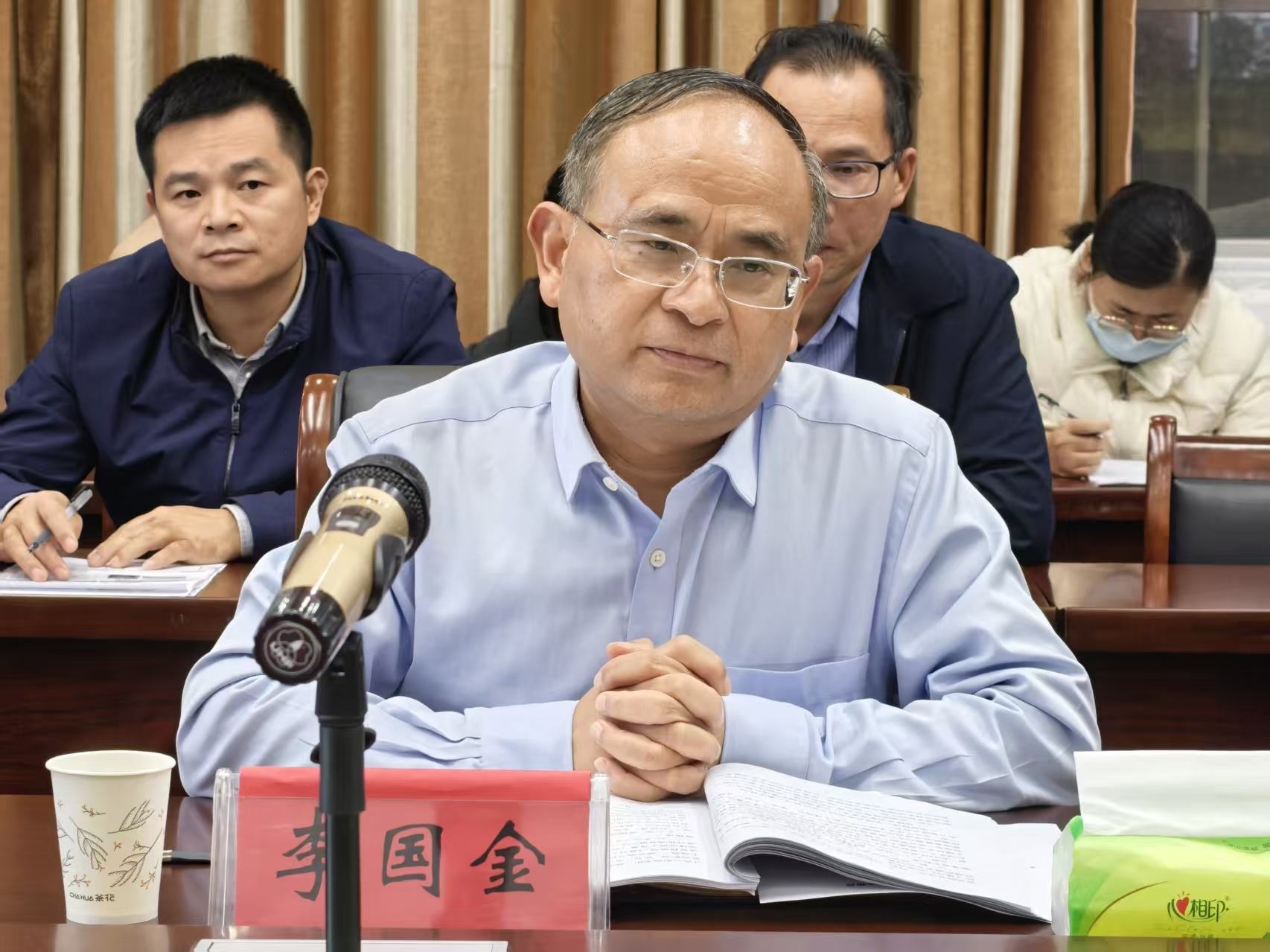 (本站讯 24级思政2班舒敏贤、25级思政班刘慧琳报道)为高质量推进党的二十届四中全会精神宣讲工作,实现理论传播与育人实践精准衔接,11月12日下午,我校召开党的二十届四中全会精神宣讲集体备课会。校党委书记李国金,党委副书记、校长蔡海生,党委委员、副校长李建军,党委委员、副校长谢芳,马克思主义学院师生代表共同参会。本次集体备课会由马克思主义学院党委书记、院长李霞主持。