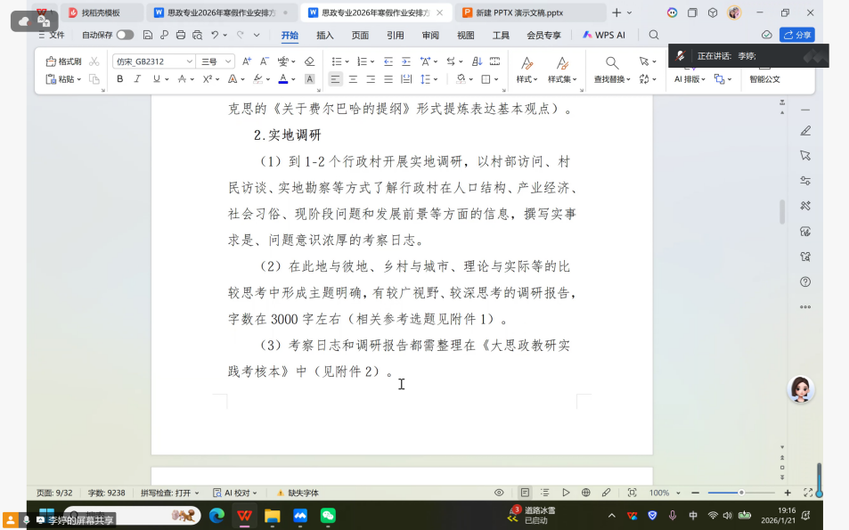 (本站讯 24级思政2班郑雅馨报道)1月21日晚,我院通过腾讯会议平台召开寒假作业布置大会,就思政专业学生寒假实践任务展开详细部署。会议由院党委委员、思政专业负责人李婷老师主持,院党委书记兼院长李霞、副院长代祥、党委副书记刘加林、专业教研室主任李小芳、24、25级班主任及24、25级全体学生参加了会议。