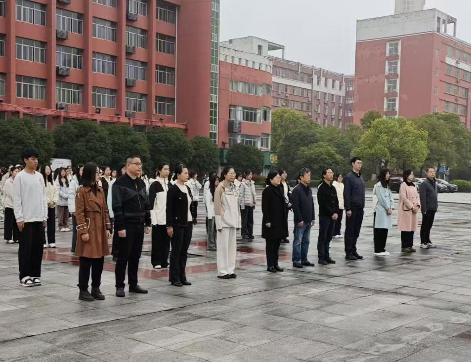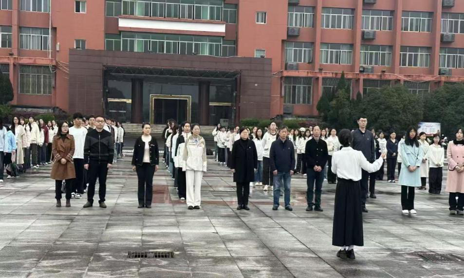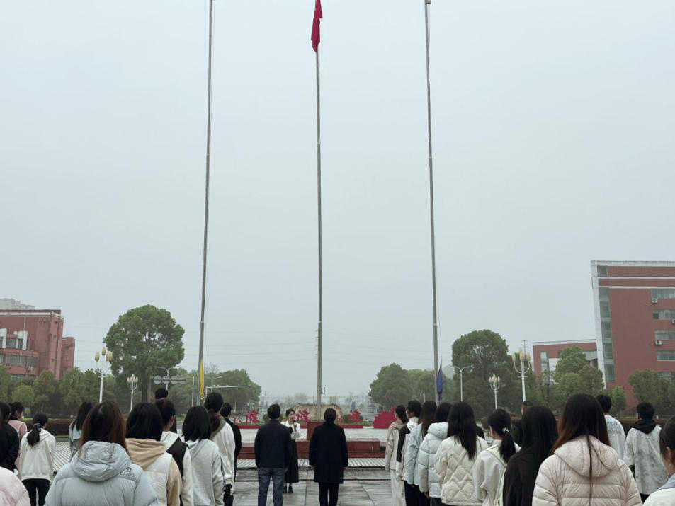(本站讯 25级思政班罗果报道)3月30日清晨,我院升旗仪式在主教楼前广场庄重举行。校党委委员、副校长余新卫,人事处、教务处、科研处教师代表,以及我院师生代表共计一百余人到场。