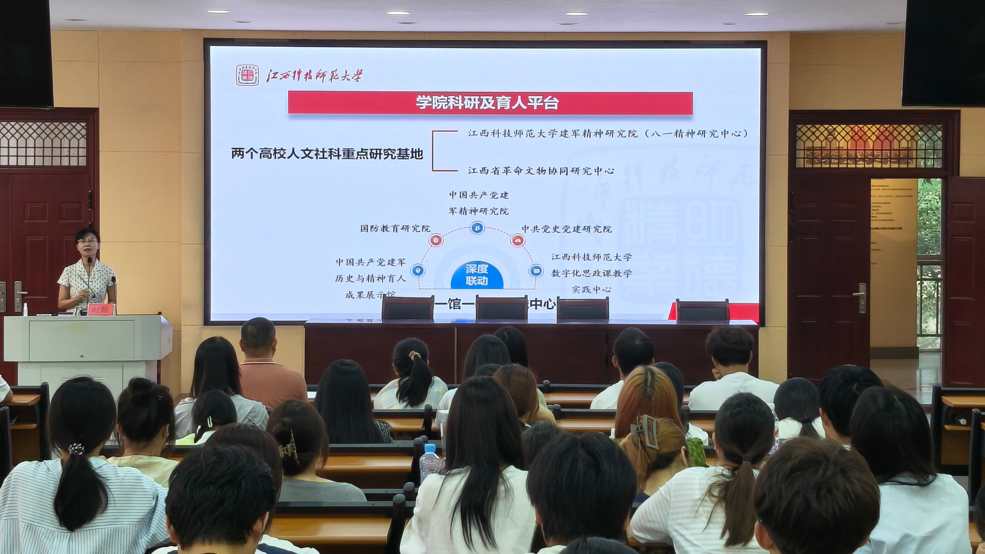 在学科介绍环节,舒醒院长重点阐述了该院三大硕士方向的特色与优势。中共党史党建学作为江西省唯一的硕士授权点,以建成全国一流学科为目标,计划于2029年达到博士点申报条件。该学科聚焦红色文化及话语发展研究,扎根江西地方党史,在闽浙赣革命根据地、井冈山革命根据地等史料整理与研究方面成果丰硕,出版《闽浙赣革命根据地历史资料文库》等著作20余部,其中多部获奖;马克思主义理论作为一级学科硕士点,注重与中共党史党建学形成优势互补,聚焦大中小幼一体化思政课教学改革,持续深化马克思主义基本原理、马克思主义中国化、思想政治教育等方向的研究;学科教学(思政)方向则明确以培养高素质中学政治教师为目标,构建了由33名导师组成的培养团队,其中校内导师13人,校外导师20人,着力推动现代教育技术与思政课程深度融合。