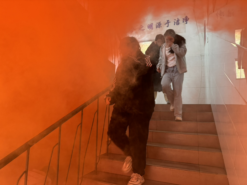15时整,急促的警报声划破8栋宿舍楼的宁静,演练正式开始。楼道内模拟红色烟雾缓缓扩散,能见度迅速降低,同学们立即捂住口鼻,保持低姿弯腰姿势,沿预定路线快速有序地向大学生活动广场集结。仅用时2分12秒,全体人员安全抵达指定区域,随后清点了人员人数,确保全员无遗漏。